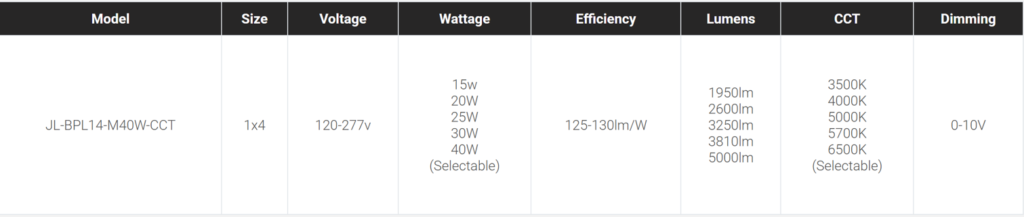 1’ x 4’ Back-lit LED Panel light | Wattage Selectable | CCT Selectable | 125lm/W | 0–10V Dimming