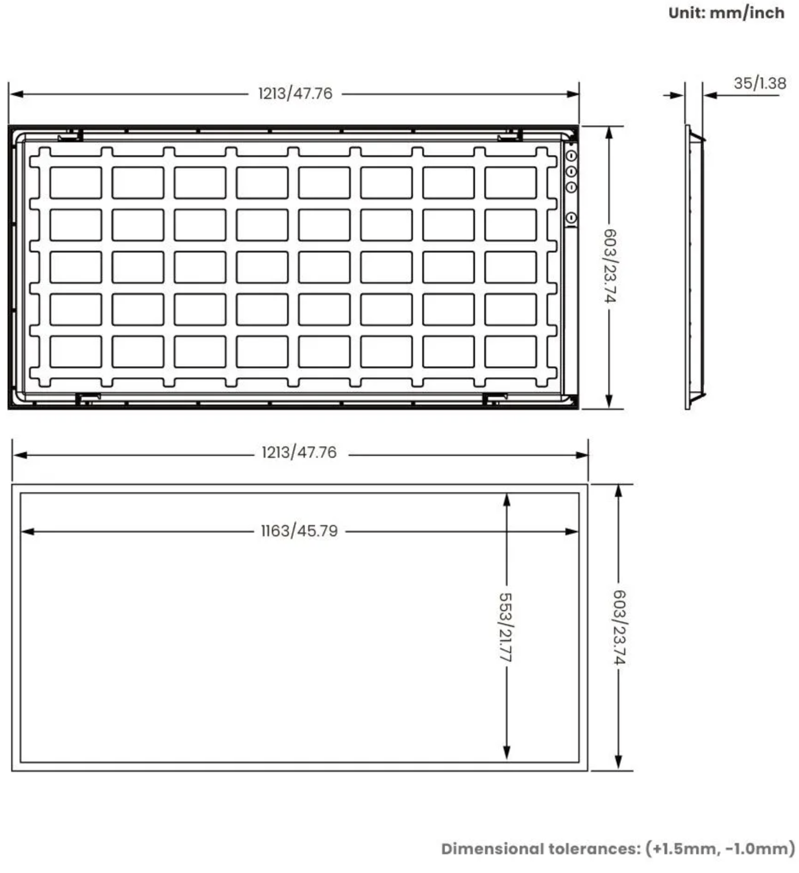 • Size: 2’x4’ (47.76” x 23.74” x 1.38” / 1213mm x 603mm x 35mm)