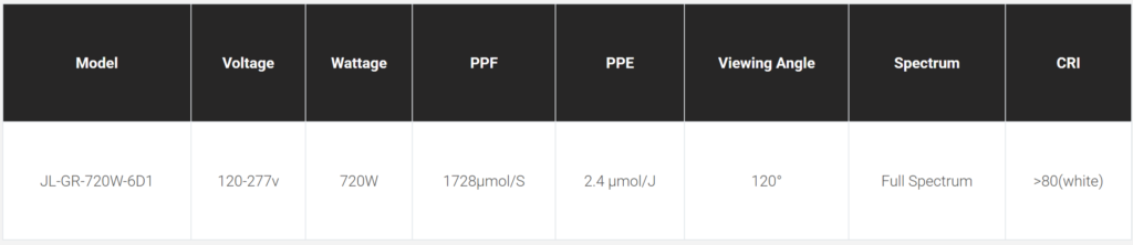 - Photosynthetic Photon Flux: 1728 µmol/s