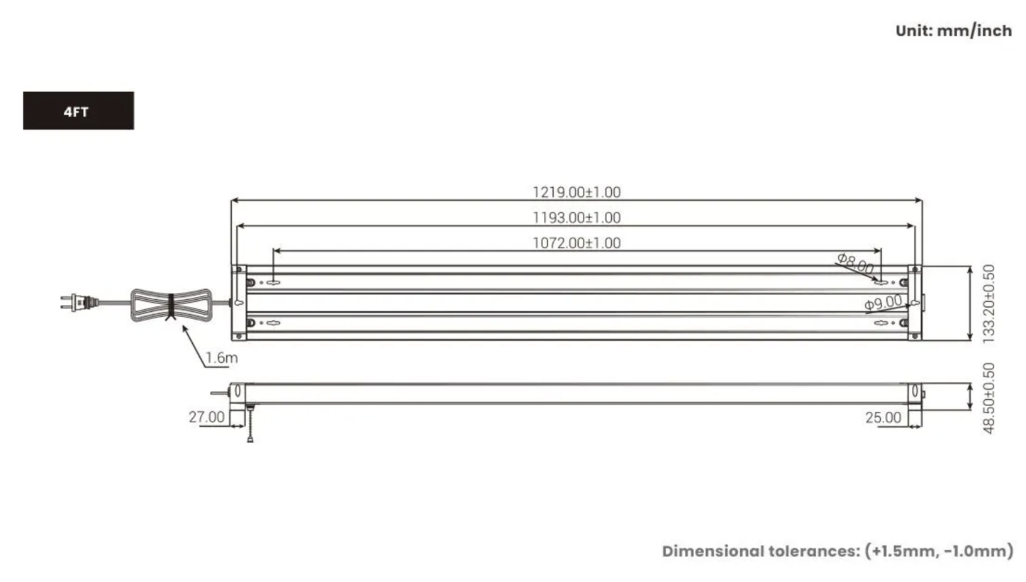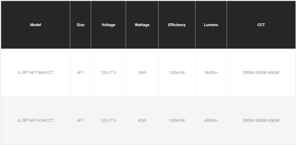 • Wattage: 4FT: 36W/42W (Selectable)