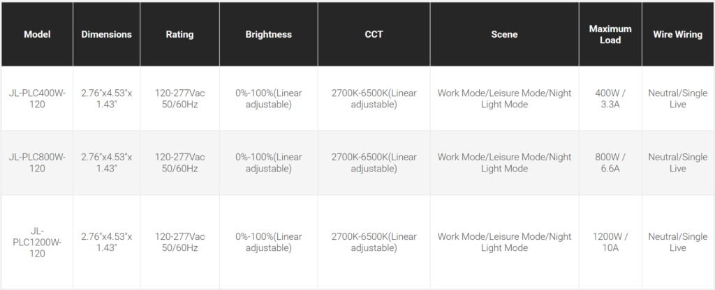 Smart Switch | 120-277Vac 50/60Hz | Smart Dimming | CCT Adjustable | Scene Model | Maximum Load 400W 800W 1200W